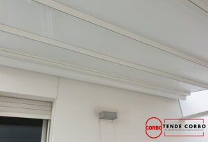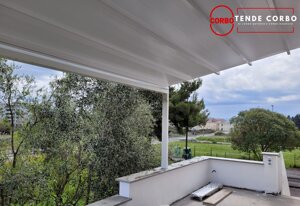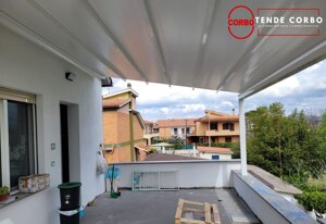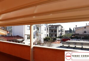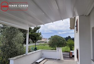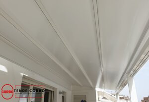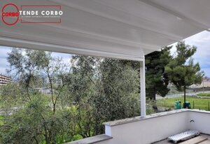 ● Tenda con frangitratta in alluminio estruso verniciati bianchi RAL 9010 o avorio RAL 1013 in abbinamento al telo