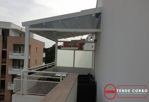 ● Tenda richiudibile ad impacchettamento realizzata con frangitratta in alluminio estruso con lega primaria UNI 6060