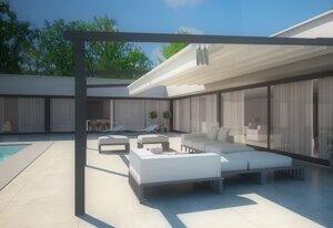 Essa si contraddistingue grazie alla sua struttura portante in alluminio verniciato, con colori moderni ed eleganti, ed è completata da una tenda mobile ad impacchettamento che permette di creare un confortevole spazio abitativo esterno protetto da sole, pioggia e venti di forte intensità.