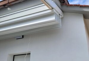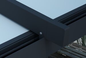 ● Gronda in alluminio estruso, portante, con scarico dell'acqua all'interno dei montanti