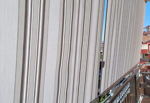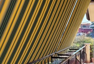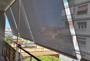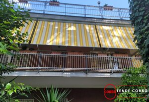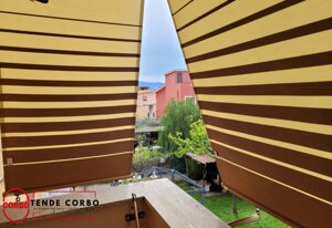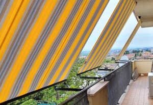 La tenda a molla è semplice e pratica e trova il suo impiego in qualsiasi balcone.