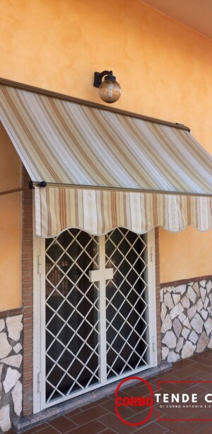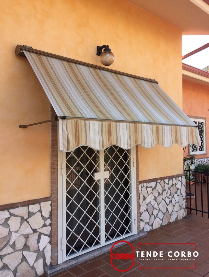 Con la tenda tortiglione si propone un vecchio modello di tenda da sole arricchito con particolari rifiniture, bracci a tortiglione con ricciolo e terminale in alluminio.