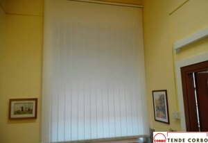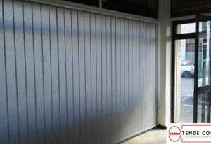La tenda verticale è un pratico sistema di oscuramento caratterizzato da bande in tessuto o in PVC, lunghe e verticali, scorrevoli tramite un comando a corda e orientabili con catenella.